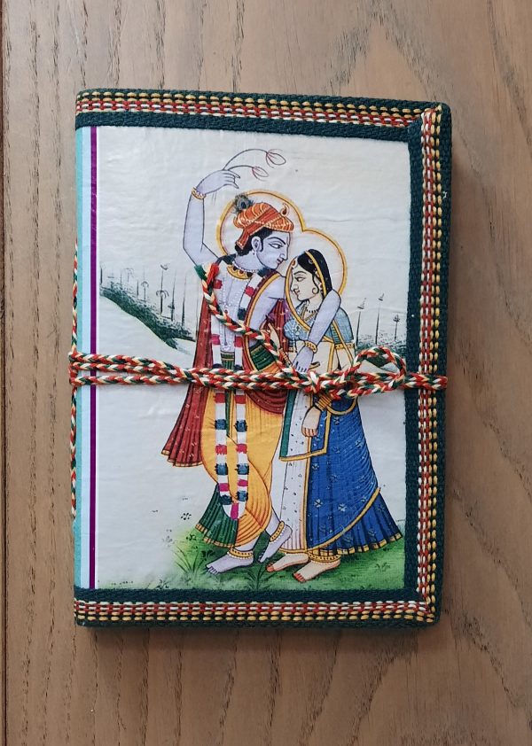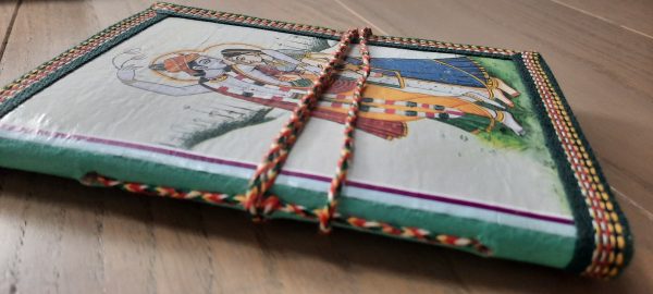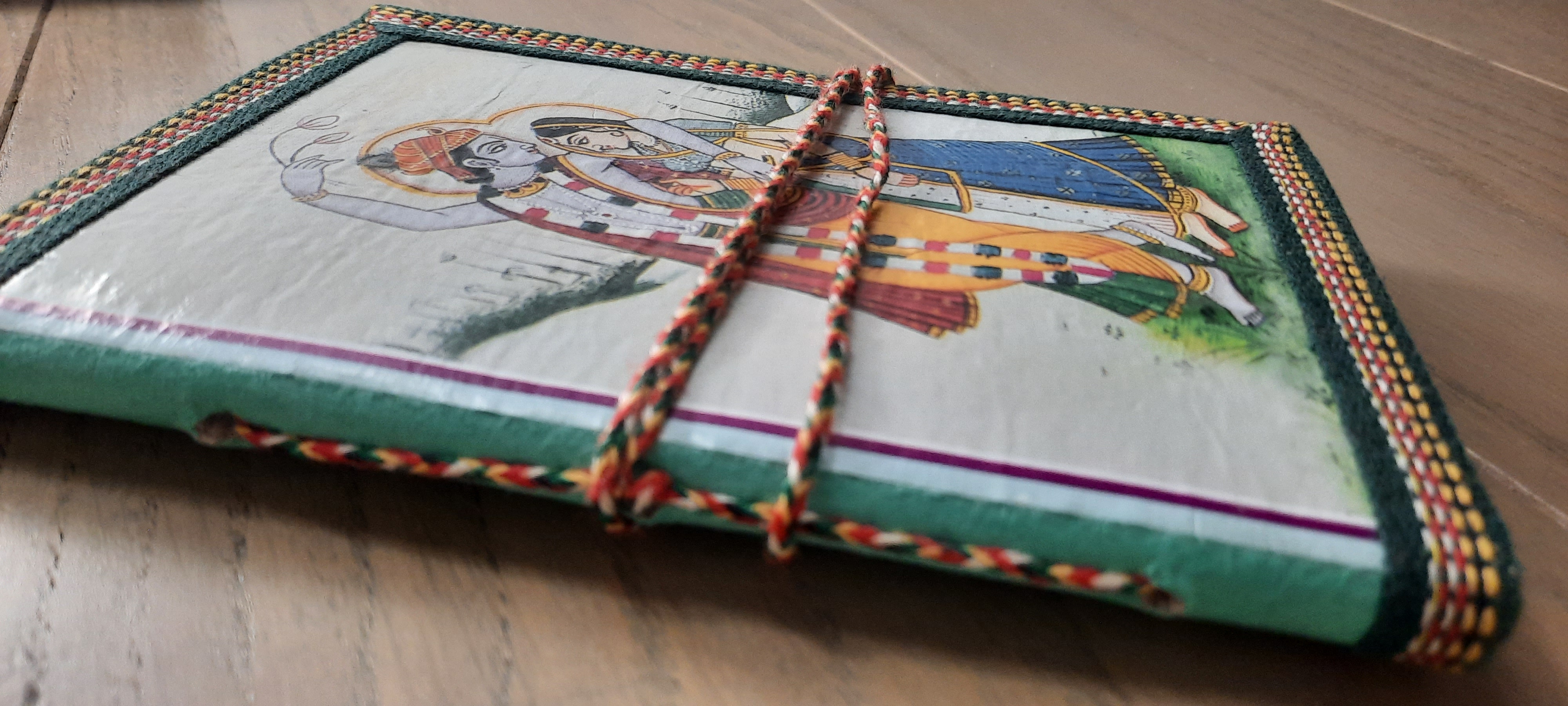 A handmade paper notebook with a beautiful drawing of diviniy on the front.